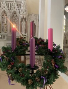 Purple is the colour dominating Churches during Advent. Vestments, Candles and Banners are all in Purple.